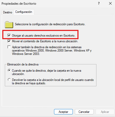 Crear una Directiva de Grupo (GPO) a nivel de usuario para redirigir las carpetas del cliente al recurso compartido.